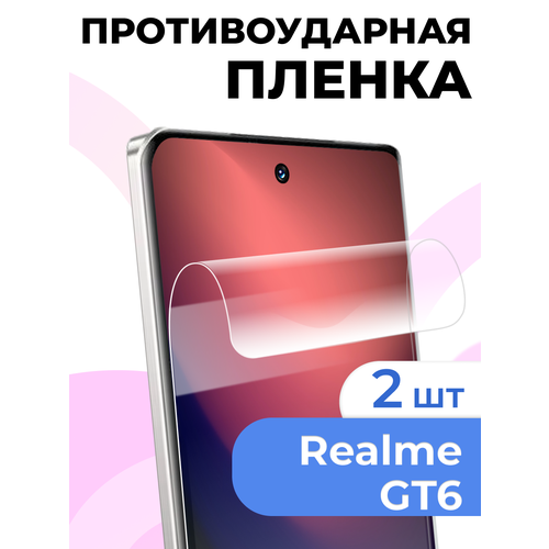 Комплект 2 шт. Глянцевая пленка для Realme GT6 / GT6T, противоударная, защитная пленка на Реалми