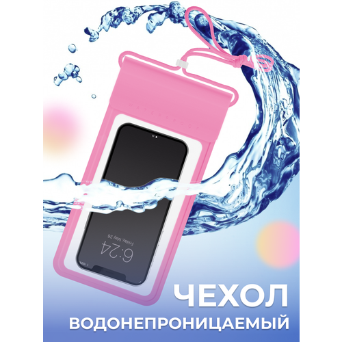 Водонепроницаемый чехол для телефона, документов / Непромокаемый чехол со шнурком / Сумка для погружения / Розовый
