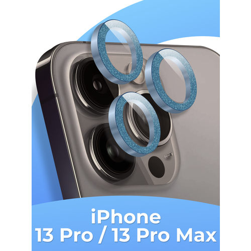 Стекла (линзы) для камеры iPhone 13 Pro, 13 Pro Max / Набор стекол 3шт. на камеру с блестками, Синий