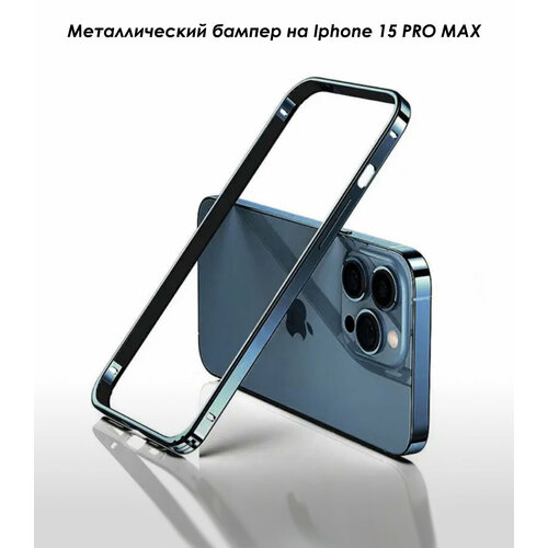 Металлический матовый бампер на iPhone 15 Pro Max Синий титан