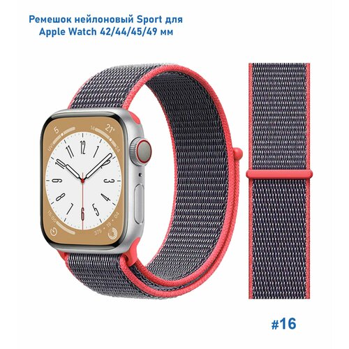 Ремешок нейлоновый Sport для Apple Watch 42/44/45/49 мм, на липучке, металлик+розовый (16)