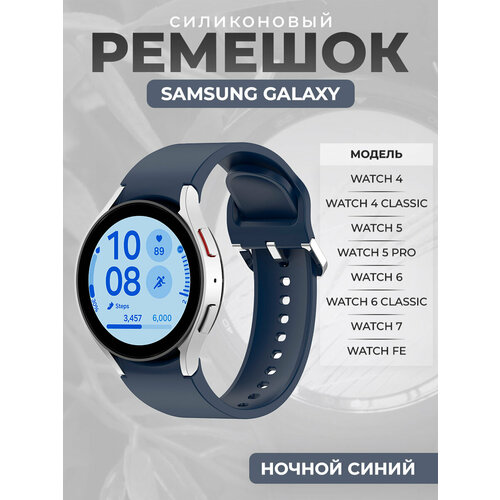 Силиконовый ремешок для Samsung Galaxy Watch 7 / FE / 6 Classic, с серебристой застежкой, ночной синий