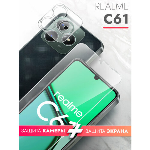 Защитное стекло для Realme C61 (Риалми С61) на Экран и Камеру, (гибридное: пленка+стекловолокно), прозрачное силиконовая клеевая основа тонкое Hybrid Glass, Brozo