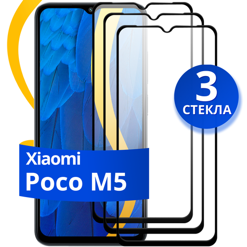 Комплект из 3 шт. Глянцевое защитное стекло для телефона Xiaomi Poco M5 / Противоударное стекло с олеофобным покрытием на смартфон Сяоми Поко М5