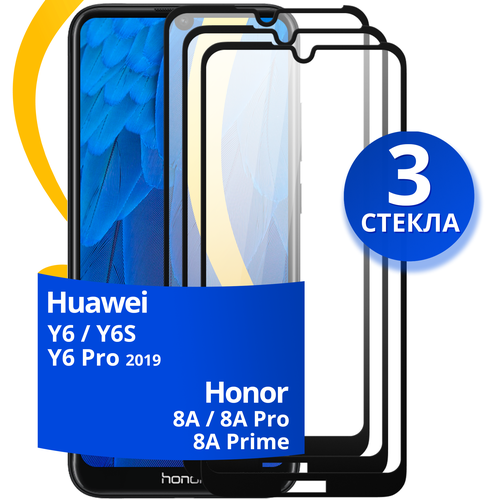 Комплект из 3 шт. Глянцевое стекло для телефона Honor 8A, 8A Pro, 8A Prime, Y6 Pro 2019, Y6 2019 и Y6s / Хонор 8А, 8A Про, 8А Прайм, У6 Про, У6 и У6с