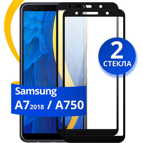 Комплект из 2 шт. Глянцевое защитное стекло для телефона Samsung Galaxy A7 2018, A750 / Противоударное стекло на Самсунг Галакси А7 2018 и А750