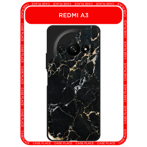 Черный матовый чехол на Xiaomi Redmi A3/A3x/Poco C61 / Сяоми Редми А3/A3x/Поко С61 с принтом Черный мрамор уголок