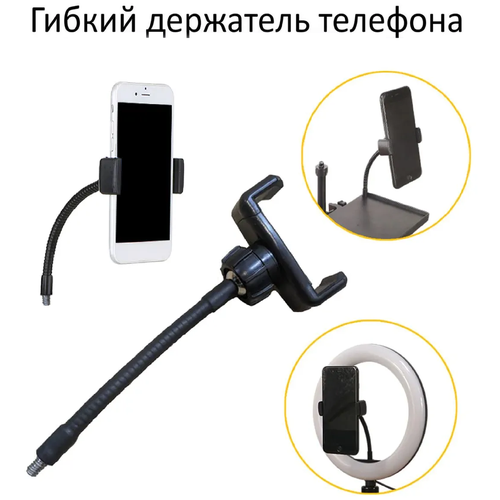Гибкий держатель для телефона, для штатива и кольцевой лампы, Наружная внешняя резьба 1/4, Длина 17 см, Черный