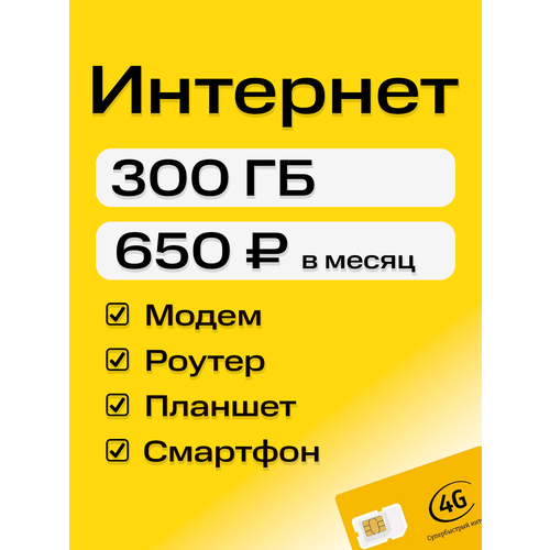 SIM-карта для модема и роутера интернет 300 Гб за 650 ₽/мес в сети Билайн