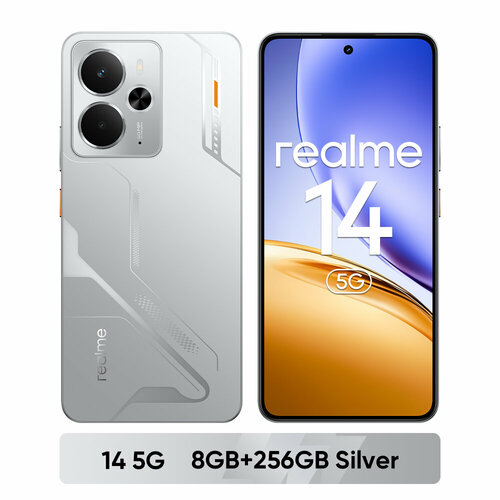 Смартфон realme 14 5G 8/256 ГБ EAC NFC Процессор Snapdragon® 6 Gen 4 Зарядка 45 Вт 6000 мАч, Серебряный