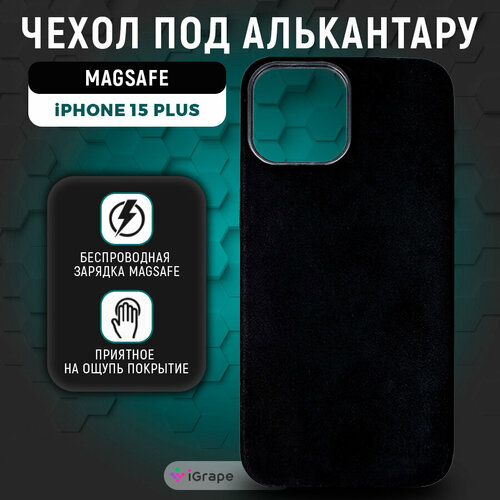 Чехол под алькантару с MagSafe для iPhone 15 Plus, iGrape (Черный) / чехол на айфон 15 плюс