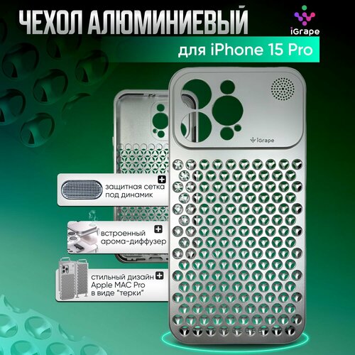 Металлический чехол (закрытый) из алюминия для iPhone 15 Pro, iGrape (Серебристый) / чехол на айфон 15 про