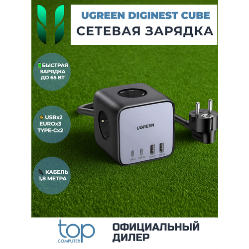 Сетевое зарядное устройство Ugreen DigiNest Cube 65W CD268-60113 3xAC outlets +2xA+2xC