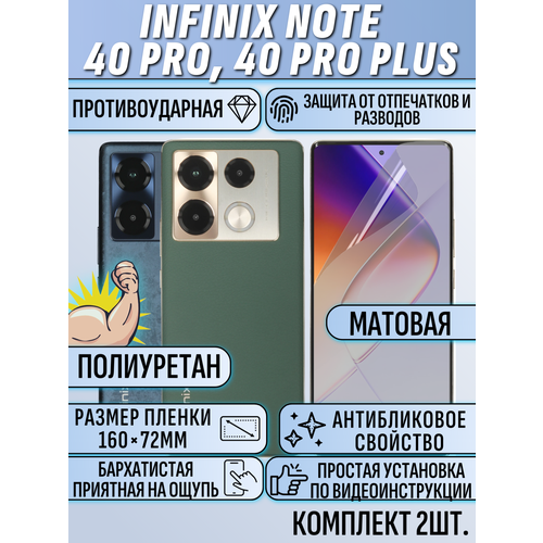 Гидрогелевая пленка для Infinix Note 40 Pro Note 40 Pro Plus полиуретановое полноэкранное матовое покрытие комплект 2шт
