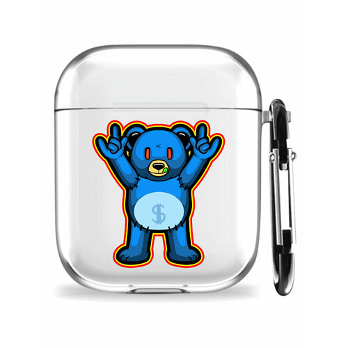 Силиконовый чехол Mcover для беспроводных наушников AirPods 1/2, с карабином, глянцевый, Мишка
