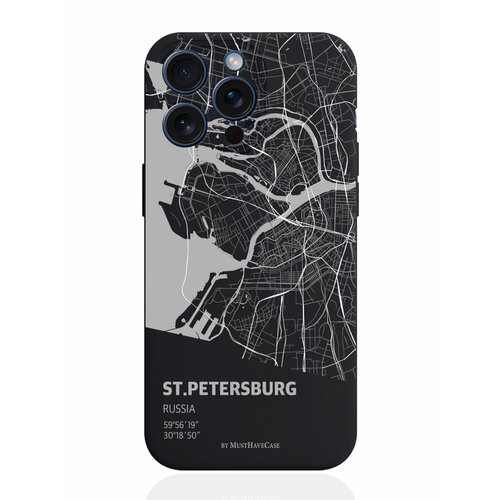 Чехол для смартфона iPhone 15 Pro Max черный силиконовый Карта Санкт-Петербурга