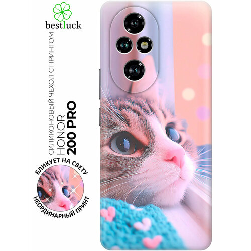 Силиконовый чехол на Honor 200 pro с принтом "Котик у подоконника"