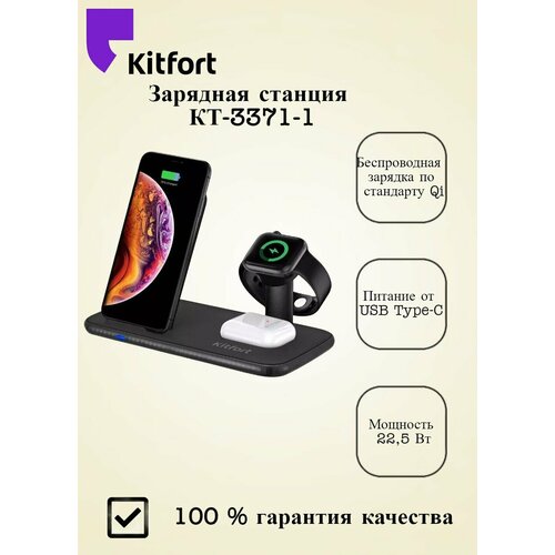 Зарядное устройство Kitfort КТ-3371-1, для 3 устройств, 10W, Qi