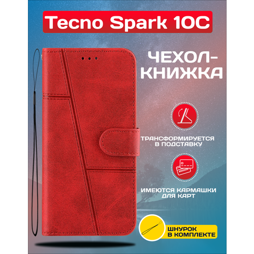 Чехол книжка wallet case на Tecno Spark 10C / Техно Спарк 10С (Красная)