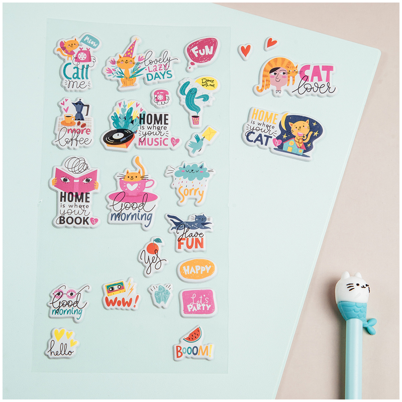 Наклейки объемные MESHU "Cat lover", 10*24см, 24 наклейки, инд. уп., европодвес 100058555634
