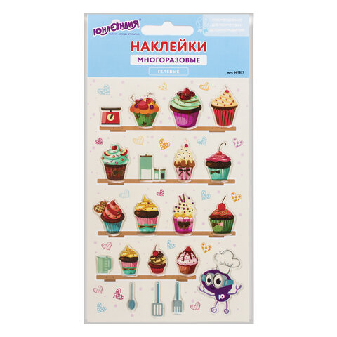 Наклейки гелевые Кексы многоразовые с тиснением фольгой 10х15 см ЮНЛАНДИЯ 661821 (4шт) 100058546505