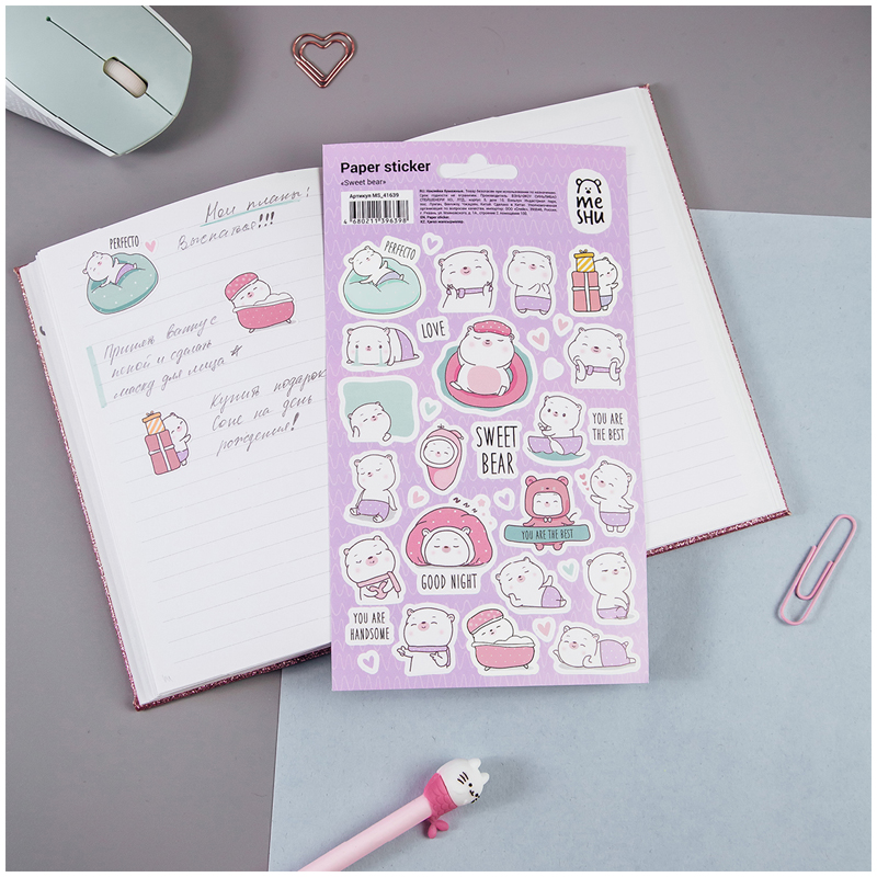 Наклейки бумажные MESHU "Sweet bear", 12*21см, 34 наклейки, европодвес, (10шт.) 100058555761