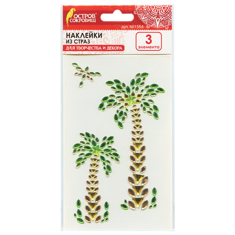 Наклейки готовые из страз ПАЛЬМЫ, 3 декоративных элемента, 9,5 х 15,5 см, ОСТРОВ СОКРОВИЩ 100058551865
