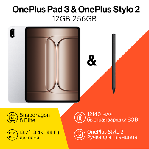 Планшет OnePlus Pad 3 12/256 ГБ, 13.2" экран, синяя, Ручка для планшета OnePlus Stylo 2, bluetooth, серебро