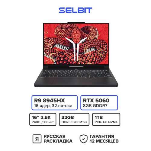 Игровой ноутбук Lenovo Legion R9000P 2025 AI, AMD Ryzen 9 8945HX, RAM 32ГБ, SSD 1ТБ, RTX 5060, Черный
