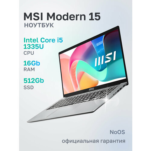 Ноутбук MSI Modern 15 F13MG-201XRU Intel Core i5-1335U/16Gb/SSD512Gb/15.6"/IPS/FHD/60Hz/NoOS/Urban Silver (9S7-15S122-201)