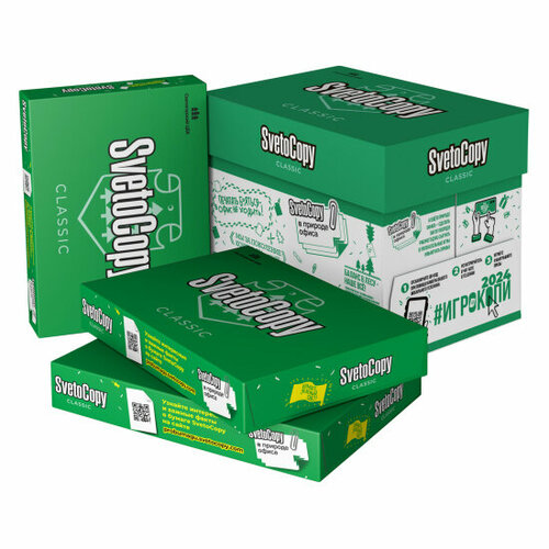 Бумага SvetoCopy Classic A4, офисная, 80г/м², плотность листа 96%, непрозрачности 146%, белизна , 5 пачек ,1 коробка 2500 листов.