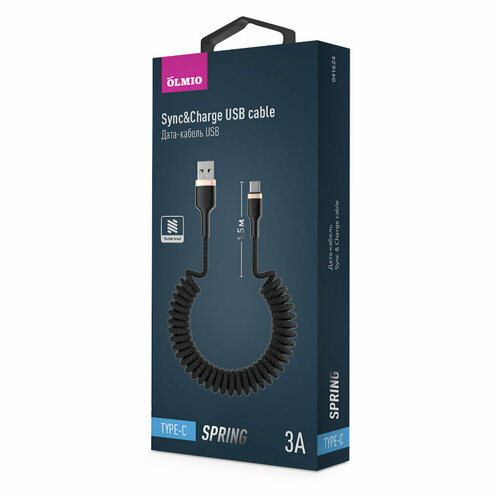 Витой кабель зарядки и передачи данных USB 2.0 Type-C, 1.5м, 3A SPRING , OLMIO
