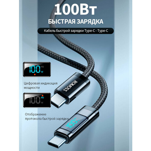 Кабель Romoss CB323S, Type-C - Type-C, 1м, PD 100ВТ, 5A с дисплеем