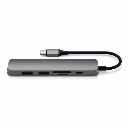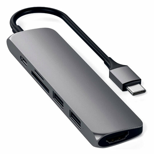 Переходник/адаптер Satechi SLIM ALUMINUM TYPE-C MULTI-PORT ADAPTER V2 (ST-SCMA2), длина 0.15 м, 1 шт., space gray