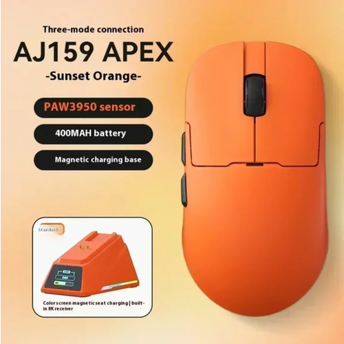 Беспроводная мышь AJAZZ AJ159 APEX, 3 режима, 400 мАч, 8 к, PixArt PAW3950, оранжевая.