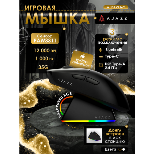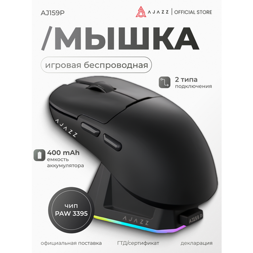 Игровая беспроводная мышь AJAZZ AJ159P, черная, док-станция, PAW3395, 26000dpi