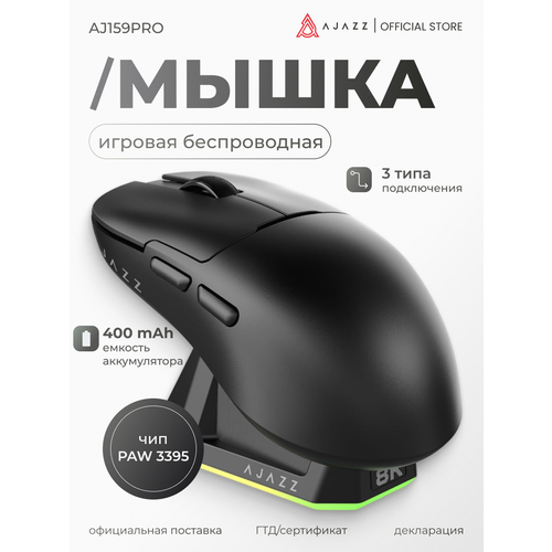 Игровая беспроводная мышь AJAZZ AJ159PRO, черная, док-станция, PAW3395, 8000 Гц