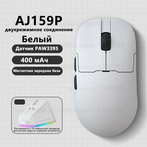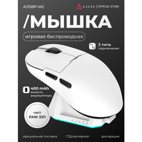 Игровая беспроводная мышь AJAZZ AJ159P MC, белая, док-станция, PAW3311, 3 режима подключения, 400 мАч