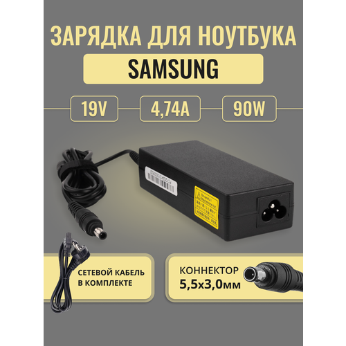 Зарядка AA-PA1N90W для ноутбука Samsung R540, RV513, RV520, R530, RV511, NP300E5C и др с сетевым шнуром