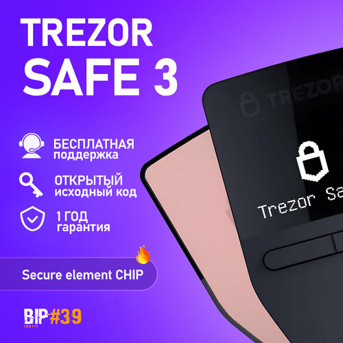 Аппаратный криптокошелек Trezor Safe 3 Galactic Rose - холодный кошелек для криптовалют от BIP39