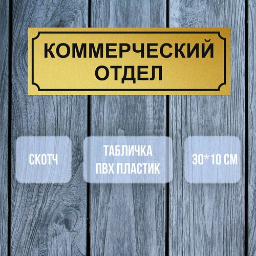 Табличка на дверь, Коммерческий отдел, ПВХ пластика 3 мм. 10х30 см. Цвет матовое золото.