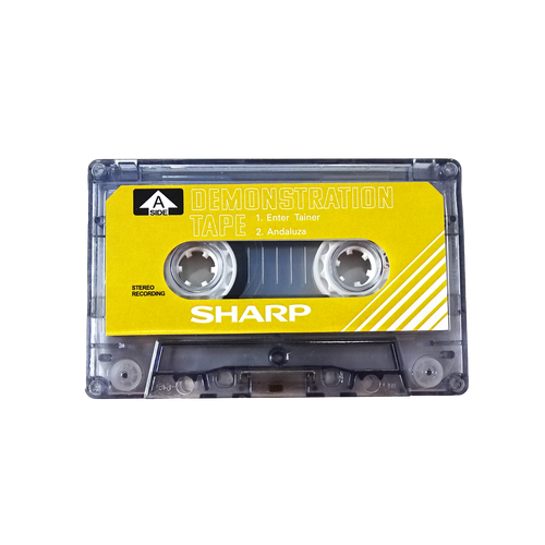 Аудиокассета SHARP демонстрационная жёлтая 10 минутная для магнитофонов SHARP. Бланк.