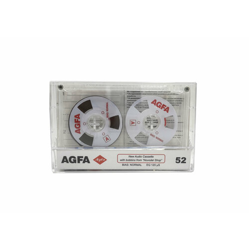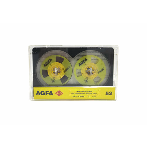 Аудиокассета "AGFA" с жёлтыми боббинками в чёрно-прозрачном корпусе