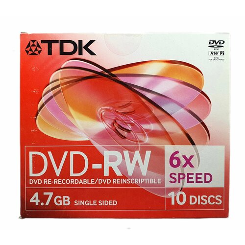 Компакт диск для записи TDK DVD+RW 4.7gb, 6x (упаковка из 10 штук)