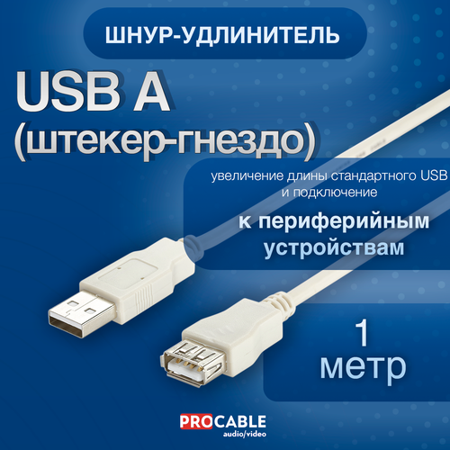 Шнур-удлинитель USB-А (штекер) - USB-A (гнездо) 1 метр