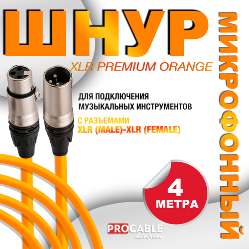 XLR PREMIUM ORANGE 4 м. Микрофонный шнур XLR PREMIUM ORANGE (штекер-гнездо) OD 6.5 mm 4 метра