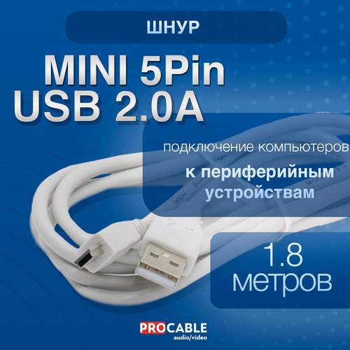 Шнур mini B 5Pin штекер - USB2.0-A штекер 1.8 метра