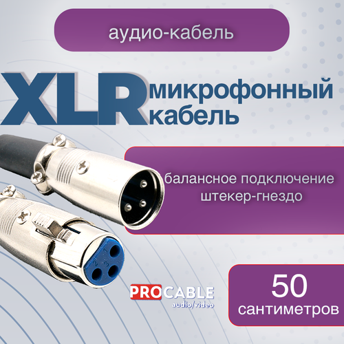 XLR (штекер-гнездо) 0,5 м. Микрофонный шнур XLR-XLR (штекер-гнездо) для балансных соединений 50 сантиметров