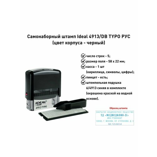 IDEAL 4911/DB Typo Автоматический самонаборный штамп 3 строки, 1 касса (штамп 38 х 14 мм)
