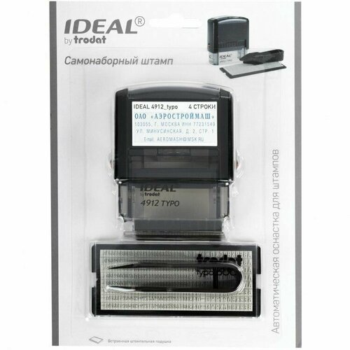 IDEAL 4912/DB Typo Автоматический самонаборный штамп 4 строки, 1 касса (штамп 47 х 18 мм)
